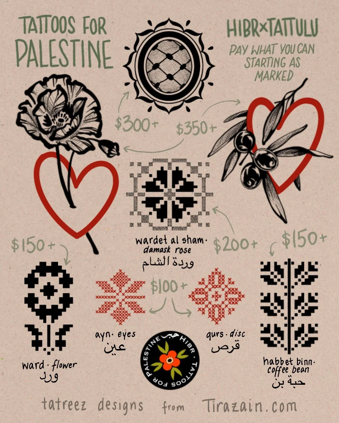 all designs will be tattooed in black. designs shown in red can be tattooed in red or black ink; no substituting other colors.